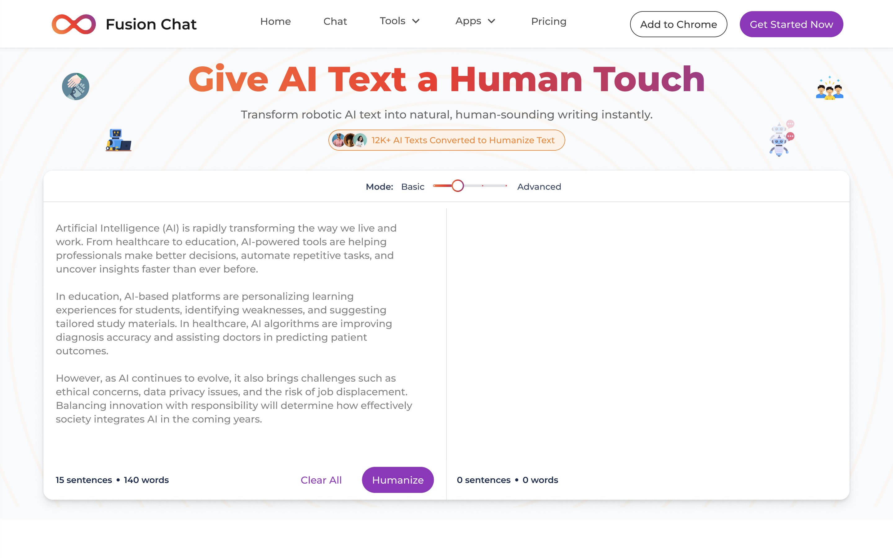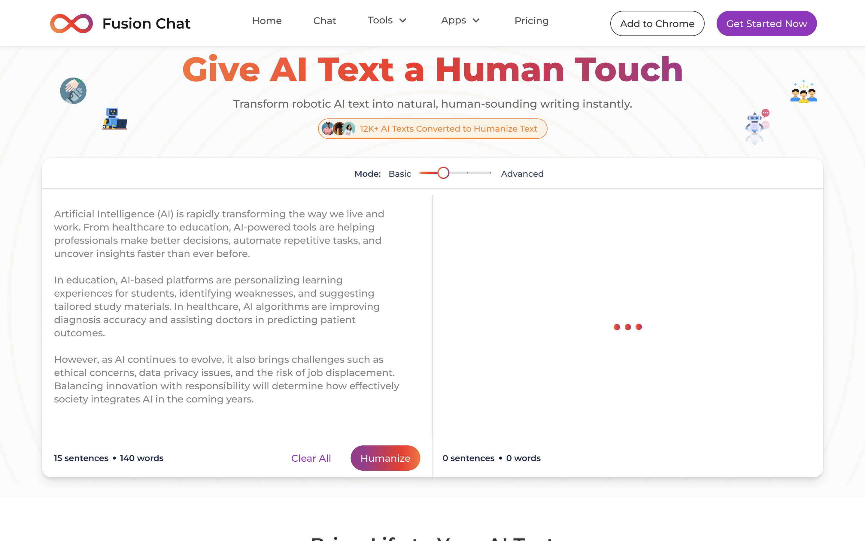 Transform robotic AI text into natural, human-sounding writing instantly.